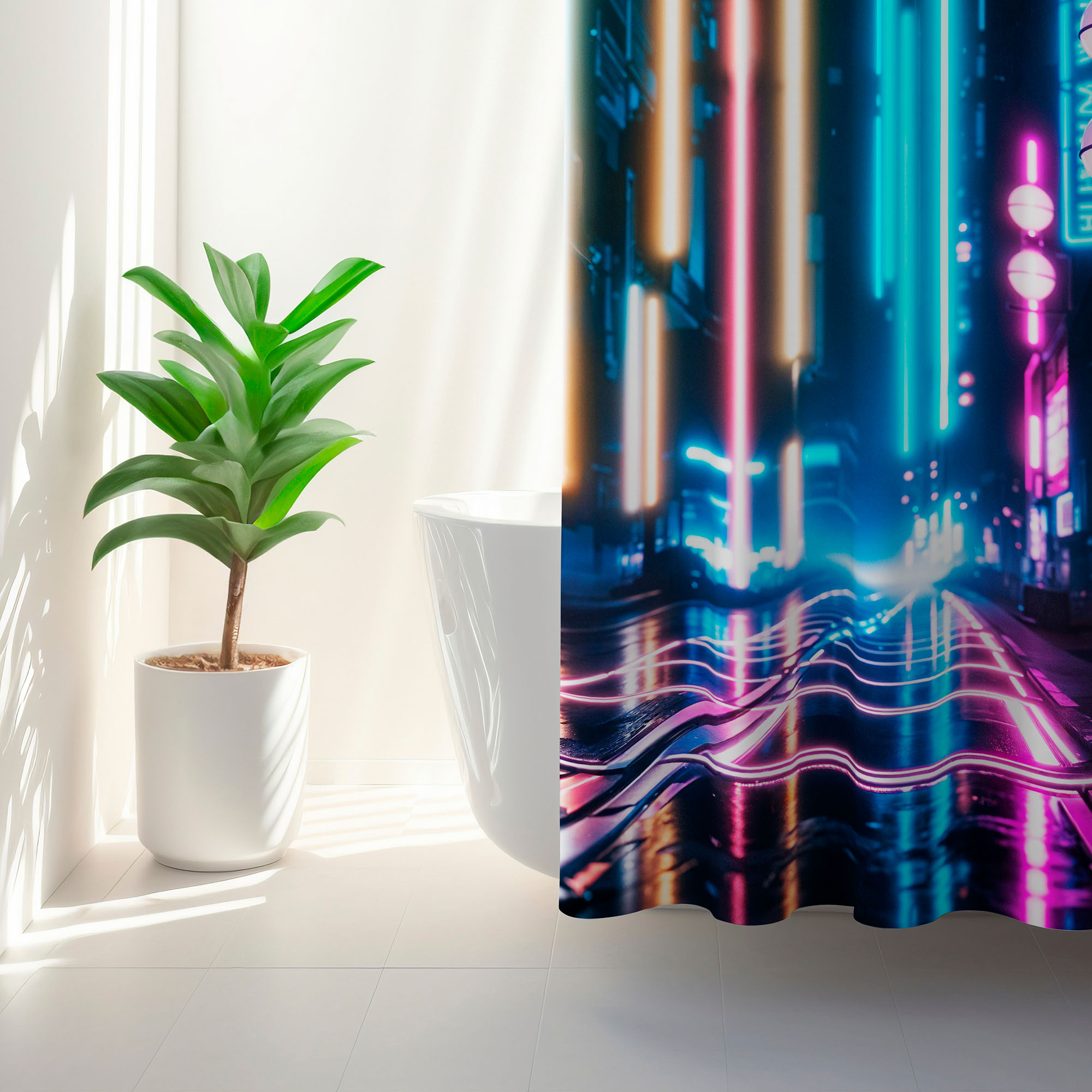 Dušo užuolaida – neoninė miesto spalva – suteikite savo vonios kambariui originalų akcentą su mūsų įdomia ir unikalia dušo užuolaida. Kūrybiško dizaino ir ryškių spalvų ji ne tik apsaugo nuo vandens purslų, bet ir suteikia kambariui individualumo bei stilingą išvaizdą. Idealiai tinka ieškantiems kažko ypatingo ir neįprasto kasdieniam komfortui!