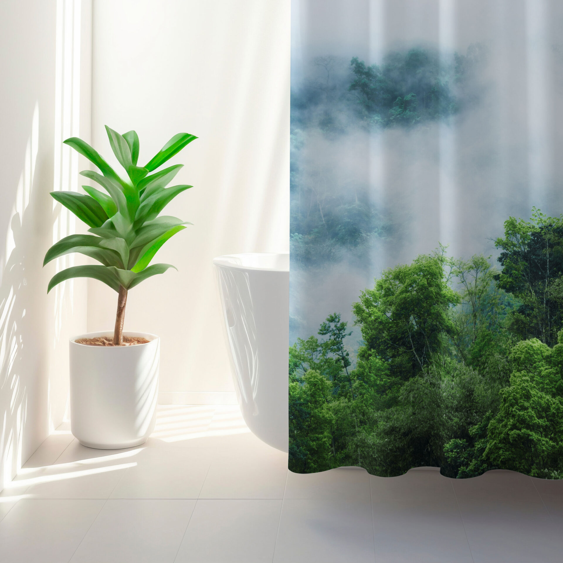Занавеска для душа с изображением таинственного леса вдохнет новую жизнь в вашу ванную комнату — без дорогостоящего ремонта!